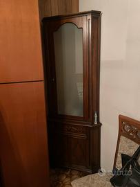Armadio fuciliera ad angolo in legno Puó contenere per 5 fucili Chiusura con chiave Antelli inferiori e cassetto (sempre con chiave) Dimensioni: altezza 200 cm, profondità angolo 50 cm, larghezza 84 cm