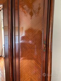 Armadio antico originale, elegante e di grande presenza scenica, realizzato in legno di ciliegio scuro lucidato.