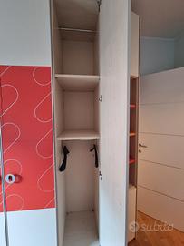 Armadio GIESSEGI con cassettiera interna. Colore bianco rovere con inserto rosso .