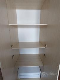 Armadio con quattro ante e due cassettiere interne da tre cassetti. Larghezza 180 cm, profondità 68 cm (profondità interna 65 cm), altezza 262 cm.
