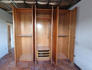 Armadio in ottime condizioni, molto solido e capiente. Altezza 253 cm larghezza 270 cm profondità 61 cm Disponibile già smontato per ritiro a Farra d'Isonzo. Su richiesta disponibili anche letto a doghe, comodini e comò in coordinato. Prezzo trattabile.