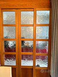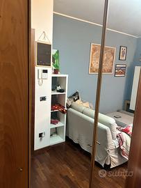 Armadio grande con due ante a specchio e una scarperia, doppia porta scorrevole con vetro, mesola con libreria a vetri superiore