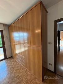 Vendo ampio armadio in legno coordinato, ideale per camere da letto grazie alla sua grande capienza e organizzazione interna. L’armadio è suddiviso in 3 sezioni: due blocchi con spazio appendiabiti per camicie e abiti su grucce, e una parte centrale con 3 comodi cassetti contenitivi. Struttura solida e in buone condizioni generali, perfetta per chi cerca una soluzione completa e funzionale. Completano il comò e 2 comodini coordinati. Caratteristiche: - 6 ante - 3 cassetti centrali - Ampio spazio appendiabiti - Finitura effetto legno - Struttura robusta Dimensioni: Lunghezza x Altezza x Profondità: 270x250x57 cm Lo smontaggio e il trasporto sono a carico dell'acquirente.