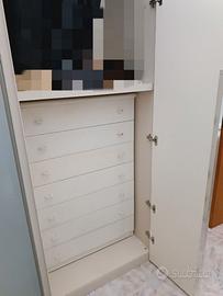 Le foto mostrano l’armadio e le cassettiere incluse.