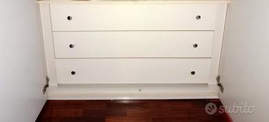 Grande armadio guardaroba di qualità e robusta costruzione, linea sobria, moderna ed elegante, laccato bianco con finitura opaca, 7 ante, 2 cassettiere da 3 cassetti ciascuna, 9 ripiani interni (5 piccoli e 4 grandi) e vari altri accessori, poco usato e in splendide condizioni, senza segni, ammaccature o screpolature. Dimensioni (cm): lunghezza 352 / profondità 62,5 / altezza 265. Ante a 4 cerniere di larghezza cm 49,5.
