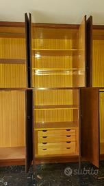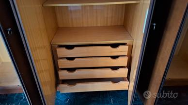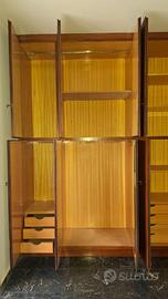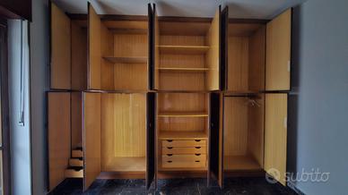 Armadio guardaroba a parete in legno, 14 ante (6 doppie, 2 singole), sette cassetti, otto ripiani, specchio interno; larghezza: 355 cm; altezza: 299 cm; profondità: 60 cm