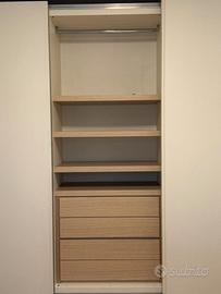 Vendo armadio guardaroba bianco laccato opaco con ante scorrevoli. All'interno i ripiani e i cassetti sono in rovere chiaro. Misura 66x305 h 260. Smontaggio e trasporto a vostro carico.