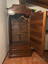 Armadio guardaroba antico in legno con specchio