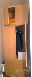 Armadio guardaroba in legno con ante e cassetti. Dimensioni: altezza cm. 220, larghezza cm. 100, profondità cm. 60. Disponibili due armadi guardaroba ciascuno al prezzo di euro 90,00. Ritiro e trasporto a cura e spese dell'acquirente
