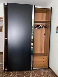 Dotato di ante scorrevoli nere, struttura solida e interni in finitura legno.