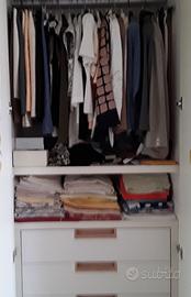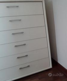 L'armadio è dotato di una cassettiera interna di 4 cassetti mentre la cassettiera esterna coordinata, compresa nel prezzo, ha 6 cassetti come da foto.