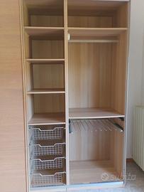 Vendo guardaroba Ikea, modello Pax Malm, effetto rovere, con ante scorrevoli, 250x66x237 cm. Armadio comodo e capiente, munito di 6 cestelli in rete da 44x54 cm, 2 cestelli in rete da 69x54 cm e un portapantaloni estraibile a 9 bracci. Presente anche il binario per un ulteriore cestello sopra il portapantaloni. Buono stato, smontaggio e ritiro a carico dell'acquirente (primo piano senza ascensore)
