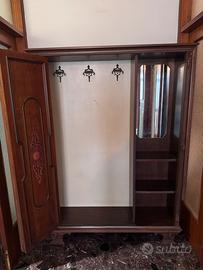 Vendo armadio guardaroba d’epoca in legno massello, finemente lavorato con ante intarsiate e decorazioni intagliate.