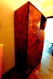 Armadio originale anni '30 in radica di betulla molto bello. Ante, cassettoni, specchio all'interno. (90x52px180). Ritiro il sabato zona Roma Nord