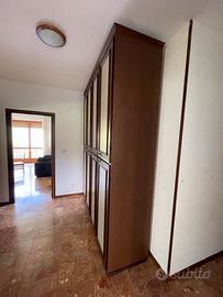 Armadio guardaroba ad 8 ante battenti, in legno color noce e laccato, interno in legno tanganika completo di attrezzatura interna. Dimensioni: L=209cm P=61cm H=271cm SMONTAGGIO E TRASPORTO A CARICO DELL’ACQUIRENTE (piano primo)