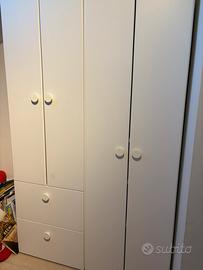 Armadio ikea, modello stuva, composto da due moduli, indipendenti, ciascuno 60x50x192 con due ante; uno dei due moduli composto da parte sopra con. bastone per appendere e 2 ripiani, parte sotto composta da due cassettoni; l’ altro modulo ha due ante con 3 ripianti e bastone in alto per appendere . Si vende smontato.