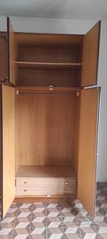 Armadio guardaroba in legno (no truciolato Ikea) , con ripiani e due cassetti grandi . Qualche segno di usura ma in buono stato . Da smontare e ritirare in loco . misure 153 cm larghezza 248 cm altezza 60 cm profondità