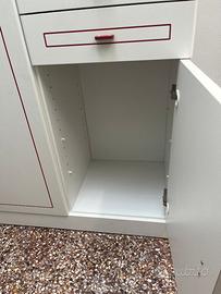 Guardaroba bianco, con motivo rosso, due casseti e tre sportelli. Perfette condizioni. Misure 35x70x170