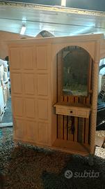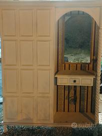 armadio guardaroba in legno massello restaurato colere bianco shabby con appendiabiti con sportello scorrevole, specchio e cassetto