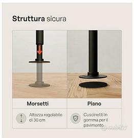 Senza alcun foro. Grazie al meccanismo di bloccaggio regolabile, l’appendiabiti da terra si adatta a soffitti alti 220–250 cm