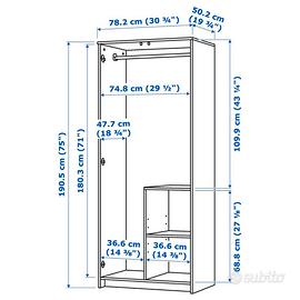 Armadio IKEA BRIMNES di colore bianco a due ante, pratico e dal design pulito, ideale per organizzare al meglio lo spazio in camera da letto o in ingresso. Misure: •Larghezza: 78 cm •Profondità: 50 cm •Altezza: 190 cm All’interno è dotato di barra appendiabiti e ripiani, perfetto sia per capi appesi che piegati. La struttura è compatta ma capiente, ideale anche per spazi ridotti. Facile da abbinare a qualsiasi stile di arredamento grazie al suo design minimal. Facile da trasportare e montare. Ritiro a mano a Bologna zona Porta San Felice.