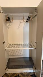 Come da foto ci sono : 1 modulo con asta e portapantaloni - 1 modulo con cassetti e asta - 1 modulo ripiano e cassetti .
