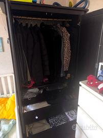 Armadio Ikea Hemnes 2 ante con chiave, 1 ripiano interno, asta appendiabiti e 2 cassetti inferiori, colore wengè.