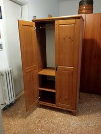 Armadio IKEA LEKSVIK a 2 ante in pino massello color rovere naturale (167x78x50 cm) con 2 ripiani interni, praticamente nuovo (valore singolo 100€).