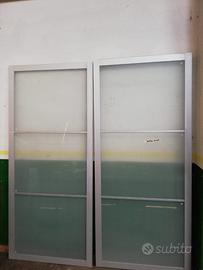 Vendo armadio IKEA di colore marrone scuro con venature, con ante scorrevoli in vetro satinato, come nuovo, composto da 2 moduli
