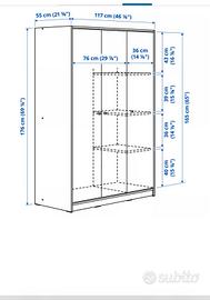Come da titolo vendo armadio IKEA modello Kleppstad. Armadio comprato da circa un'anno, vendo per cambio armadio. Misure nelle foto. Smontaggio e trasporto a carico dell'acquirente.