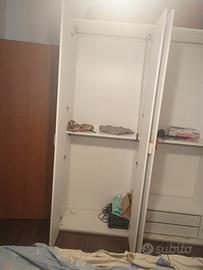 armadio 4 ante con cassettiera colore bianco . lunghezza 1,73, h 2,30, profondità 52. l armadio è in ottime condizioni,va solo pulito smontaggio e trasporto a carico dell acquirente.