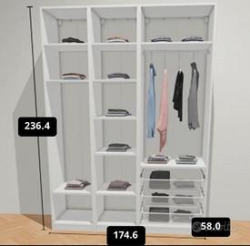 Vendo armadio IKEA PAX completo di accessori interni. Misure: •Larghezza: 174,6 cm •Altezza: 236,4 cm * Profondità: 60,4 cm Composizione ante: * 2 ante a specchio * 2 ante grigie Accessori inclusi: •Ripiani (mensole) •Cestini/estrattori per biancheria •Barra appendiabiti Armadio spazioso e molto capiente, in ottime condizioni. Struttura bianca, 2 ante specchiate e 2 ante grigie. Smontaggio e trasporto a carico dell'acquirente Monza