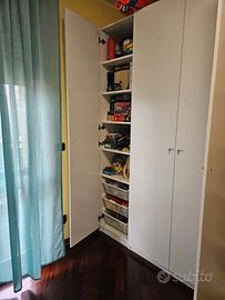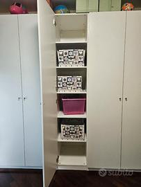 ATTENZIONE: Causa rinnovo imminente, l'armadio deve essere smontato e ritirato entro e non oltre giovedì 9. PREZZO SPECIALE: 300 € (invece di 350 €) se l'affare viene concluso e il ritiro effettuato entro la data indicata. Se non venduto entro giovedì 9, l'annuncio verrà ritirato. Descrizione: Vendesi per rinnovo cameretta grande armadio IKEA PAX acquistato nel 2021. La struttura è solida e molto capiente, ideale per organizzare al meglio lo spazio. DIMENSIONI: Larghezza: 350 cm (7 ante da 50 cm) Altezza: 236 cm Profondità: 60 cm ORGANIZZAZIONE INTERNA (Molto accessoriato): 2 Moduli da 100 cm: con bastoni appendiabiti, 4 cassetti totali e 2 cesti in rete. 2 Moduli da 50 cm: con 10 ripiani totali e 6 cesti in rete. 1 Modulo da 50 cm: con 5 ripiani. (Totale accessori inclusi: 4 cassetti, 8 cesti e 15 ripiani). STATO DEL PRODOTTO: Struttura e interni in ottime condizioni. Segnalo solo alcuni segni estetici su un paio di ante dovuti alla rimozione di scotch (usato per dei poster), come visibile nelle foto. Difetto solo estetico, ante eventualmente sostituibili in negozio con poca spesa. CONDIZIONI DI VENDITA: Prezzo: 350 € SMONTAGGIO E TRASPORTO: A totale ed esclusivo carico dell'acquirente. ZONA: Modena, zona Madonnina.