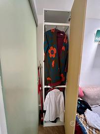 Vendesi armadio Ikea Pax mono anta con doppio scomparto interno per stivare giacche/abiti/pantaloni/camicie. La porta è di un elegante color ambra lucida. Dimensioni 40x50x236.