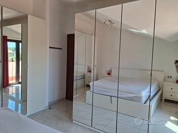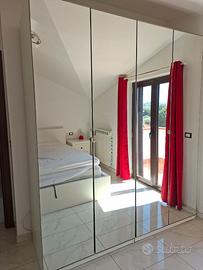 Vendo capiente armadio IKEA serie PAX, L'armadio è composto da 3 moduli principali per una lunghezza totale di 300 Dimensioni Totali • Larghezza: 300 cm (3 moduli da 100 cm l'uno) • Altezza: 236 cm (versione alta) • Profondità: 60 cm (comprese ante) Configurazione Interna: L'interno è completamente attrezzato con accessori della serie KOMPLEMENT: • 3 Bastoni appendiabiti robusti. • 7 Ripiani interni regolabili in altezza. • 2 cestelli rete • 1 porta scarpe Finiture e Accessori • 5 Ante: vetro • 1Anta classica Stato e Condizioni L'armadio è in buono stato, presenta qualche segno di usura. Smontaggio e trasporto a carico dell'acquirente