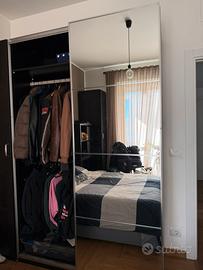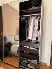 Vendo armadio guardaroba ikea pax colore marrone nero con ante scorrevoli Misure: 150x60x236 (moduli 75+75) Accessori: - 3 cassetti - 3 cestelli - 3 appendiabiti - 4 mensole Trasporto e smontaggio a carico dell’acquirente.