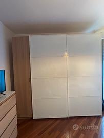 Vendo armadio ikea in perfette condizioni. 2.50cm di cui 50 cm con anta battente e 2 metri con ante scorrevoli. All’ interno ci sono ripiani , tubo per appendere, cassetti e scarpiera estraibile . Prezzo trattabile . smontaggio e trasporto a carico dell acquirente