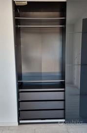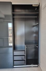 Armadio ikea super accessoriato! ante scorrevoli, vetro nero/fume' 230h x 160 x 65 cm profondità