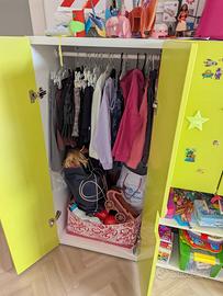 Armadio Stuva per cameretta bambini, con le seguenti dimensioni: Larghezza: 120 cm Profondità: 51 cm Altezza: 129.5 cm L'armadio è già smontato, gli adesivi sono stati rimossi