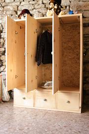 In foto un guardaroba realizzato a mano in abete massello H160, L120, P45. Il modello in foto è concepito per essere posizionato sotto ad un letto a soppalco