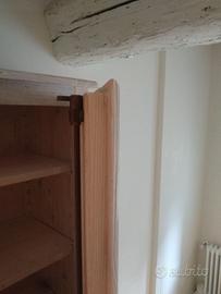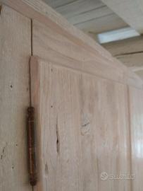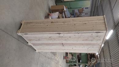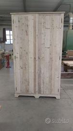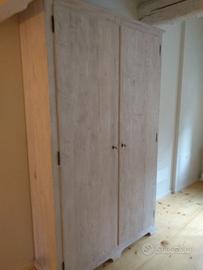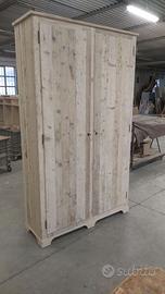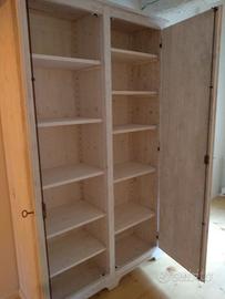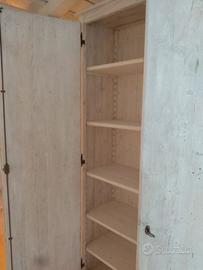 Armadio in abete vecchio recuperato con misure lunghezza 120 prof. 45 h 220 tutto in legno vecchio, predisposto internamente con 5 ripiani a sx e 5 a dx con pendente verticale centrale in cui i ripiani da 2,4 cm saranno aggiustabili in altezza con scaletta cremagliera, schienale da 14 mm in abete massello con fascia alle estremità avvitato. le ante saranno costruite a 3 strati interno in con legno vecchio esternamente e internamente multistrato di pioppo in modo da dare al bilanciatura omogenea in modo che non si incurvi nel tempo sempre con VENATURE VERTICALI con cerniere in stile e serratura ad asta con scrocchetto. Dritto e lineare con cappello dritto come pure lo zoccolo. Finitura sbiancata a cera naturale (bianca). Il tutto smontabile e semplice da montare tramite barilotti, perni e spine in legno. franco fabbrica non comprendente di iva. il mobile è stato prodotto e realizzato per un cliente su proprie specifiche e venduto non teniamo magazzino di conseguenza lo possiamo costruire uguale o modificando misure e fattezza come uno desidera, da noi diretti produttori e costruttori puoi realizzare mobili esclusivamente su misura, per dubbi e chiarimenti contattateci. ASTENERSI RIVENDITORI E COMMERCIANTI