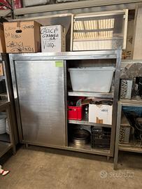 Vendo armadio professionale in acciaio inox con ante scorrevoli, ideale per ristoranti, cucine professionali, laboratori, pizzerie, gastronomie o magazzino. Struttura robusta e capiente, perfetta per riporre attrezzature, stoviglie, utensili o materiale da lavoro. Il mobile si presenta in buone condizioni generali, come da foto. Caratteristiche: •struttura in acciaio inox •ante scorrevoli •uso professionale •pratico e facile da pulire •ideale per ristorazione e laboratorio Vendita vista e piaciuta. Per ulteriori informazioni, venite a trovarci a Verona, abbiamo tante cose per la restaurazione. Prezzo: 290 € trattabili