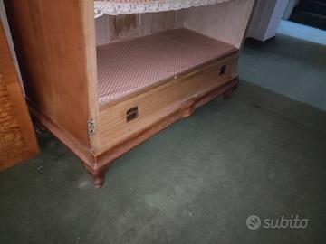 Bell'armadio in legno chiaro bois de rose dei primi del 900 molto ben tenuto. 5 ripiani (eventualmente si possono togliere), un grande cassetto. Mis. 120x 50 cm (altezza 2 m.)