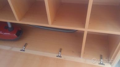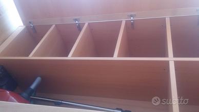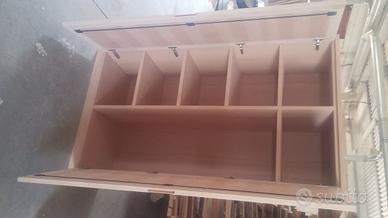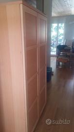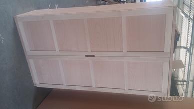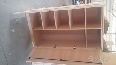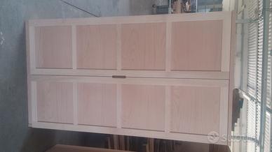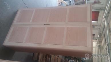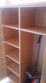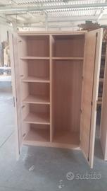 Armadio costruito in listellare ricoperto faggio (lista unica no effetto parquet) con 2 ante battenti in massello di faggio misure lungh.100 prof.50 h 180. Disposto in 2 scomparti parte sx 4 ripiani aggiustabili in altezza con ferramenta adatta parte a dx troveremo un ripiano sopra aggiustabile e sotto libero per poter inserire aspirapolvere. Le ante su cerniere da cucina regolabili ammortizzate con gola nella parte centrale dell'apertura e costruite con telaio e traversi orizzontali, tutto in massello di faggio con pannello inserito da dietro e venature orizzontali. Gambette livellatrici dietro lo zoccolo per mettere a bolla il tutto. Schienale in multistrati di faggio da 8mm. tutto unito con ferramenta idonea. Completo di finitura trasparente neutra, costruito su commissione, non disponibile a magazzino ma possiamo riprodurlo DIRETTAMENTE DAL PRODUTTORE ASTENERSI RIVENDITORI O COMMERCIANTI