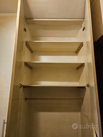 Struttura: Armadio incassato su misura, privo di pannello posteriore (si appoggia direttamente al muro). Ideale per chi ha una nicchia delle stesse dimensioni. All'interno sono inclusi 3 ripiani e un appendiabiti nella parte inferiore.