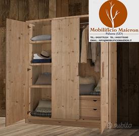 - Armadio In Legno Massello Di Abete Con 3 ante e Cassettiera Interna cod 0234