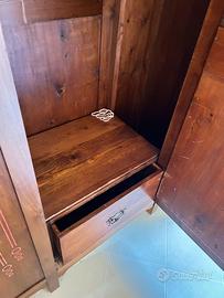 Vendo armadio in legno massello in stile classico, completo di anta con specchio e decorazioni incise sui fianchi.