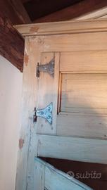 Armadio rustico in legno di abete con cerniere forgiate a farfalla e meccanismi di chiusura originali TUTTI FUNZIONANTI E INTEGRI CON CHIAVI ORIGINALI, databile tra la fine del 700 e metà 800 non trattato. Condizioni: stabile, solido, legno non trattato, con vari rattoppi in stuccatura antica. Vecchie numerose tarlature esclusivamente sulle cipolle, trattate e stabili. Misure: 197 altezza 116 larghezza 45,5 profondità. Idee d'uso: Bellissimo oggetto in ambienti rustici e con altri pezzi di antiquariato originali, come case di campagna o case in centro storico, o ancora in abitazioni in stile mix-match italiano o chabby chic. In questi casi, se non lasciato al naturale, anche laccato in colori più contemporanei potrebbe diventare un pezzo d'accento. Ritiro: Si trova ad Arezzo, centro storico, primo piano mansardato, ma è stato portato al piano intero a suo tempo. Ritiro e trasporto da organizzare in autonomia. Non spedisco né consegno a meno di un rialzo nel prezzo da concordare in base ai costi delle spedizioni. Prezzo trattabile, invece, per ritiro rapido (visto e piaciuto on line) e con profilo verificato. Posso mandare più foto e video su richiesta.