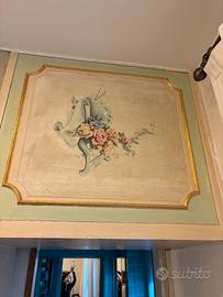 Armadio in legno tamburato dipinto a mano con cornice oro
