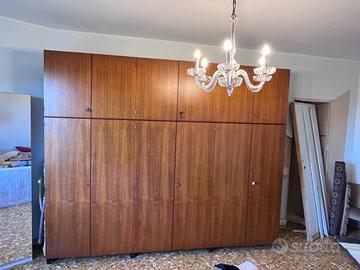 Vendesi armadio mid century in legno teak originale. Misure 300 cm x 60 cm H250 cm 6 ante, doppio corpo. TRASPORTO E SMONTAGGIO COMPLETAMENTE A CARICO DELL’ACQUIRENTE